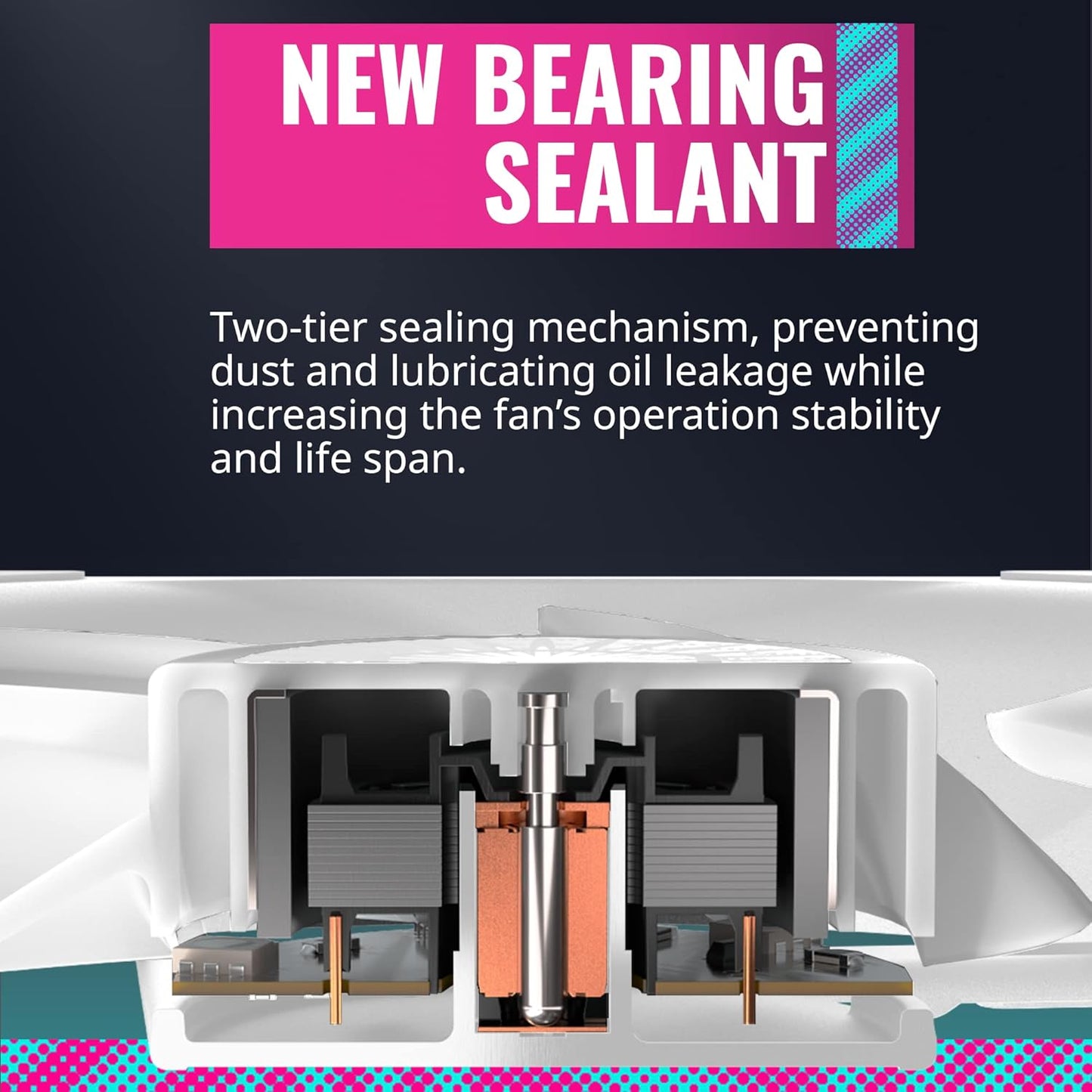 - Sealed Bearing Structure: Sealed and secured fan bearing, preventing dust and lubricating oil leakage while increasing the fan’s operation stability and life span.